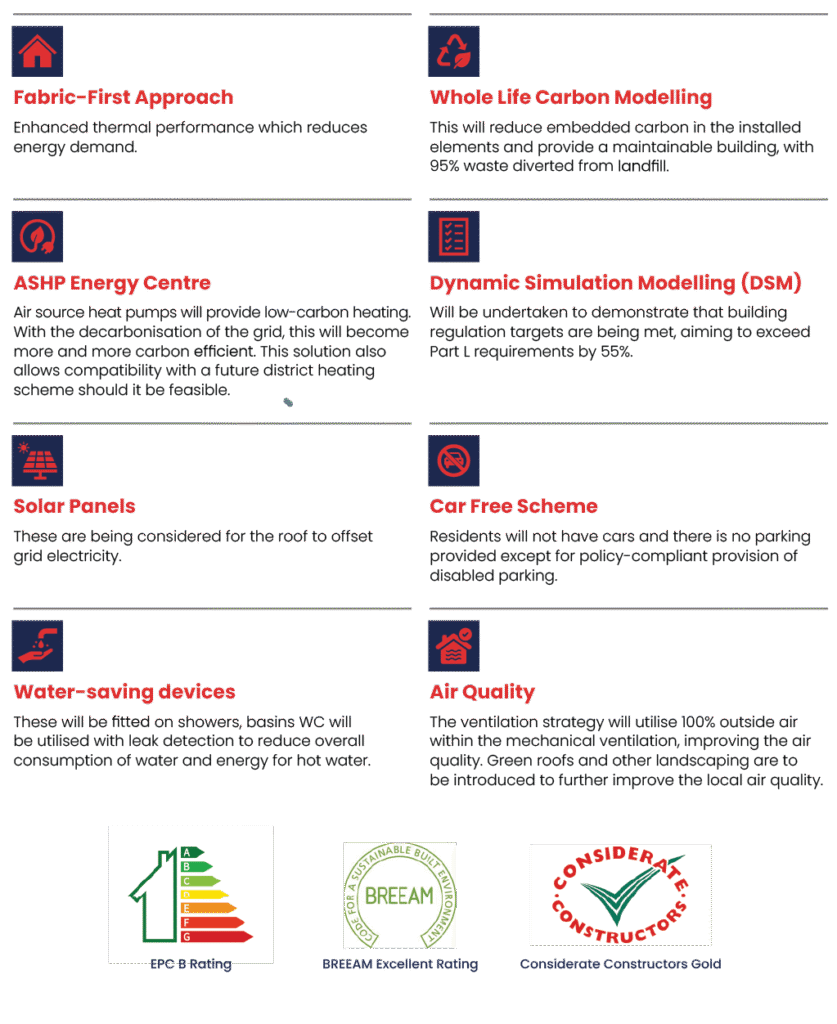 To the rear (west) of the site is the Brighton Greenway link, running between Stroudley Road and New England Road, which we recognise as a key local attraction. The massing of the proposals is consistent with surrounding buildings and takes advantage of the site’s location next to the retaining wall of the Greenway, allowing for a greater height than is there currently.